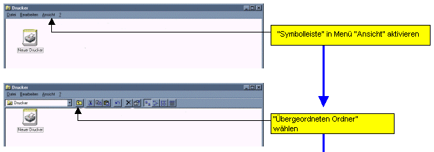 - | Wenn Windows einen neuen Drucker (automatisch) findet, den Dialog erst dann abbrechen, wenn das System die (Treiber-) Diskette verlangt. Wird vorher abgebrochen, so fehlen unter Umständen Registrier-Eintragungen und es kann zu Druckproblemen kommen. |