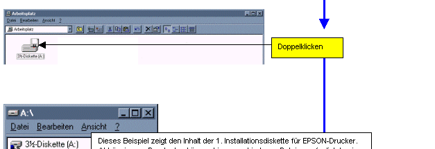 2. Drucker installieren: Original-Drucker-Installationsdiskette #1 in Lw A: einlegen |