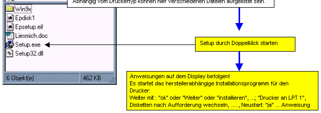 Namhafte Druckerhersteller halten auch im Internet die aktuellsten Setup-Dateien bereit: http://www.hp.com/cposupport/software.html http://www.epson.com/ |